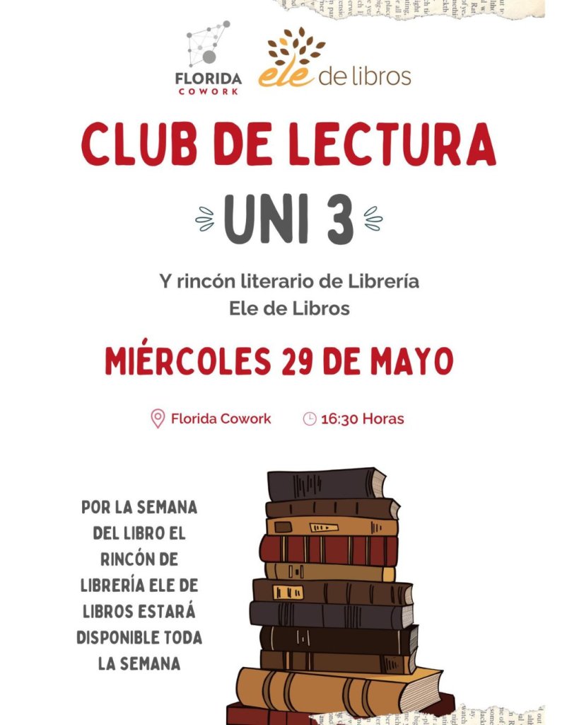 Además, por toda esta semana contaremos con rincones de librería @eledelibroslibreriaflorida en nuestro espacio, para que la comunidad de oficinas y coworkers puedan ver diferentes títulos, ojear los libros y poder conectar con alguno de ellos. 📖